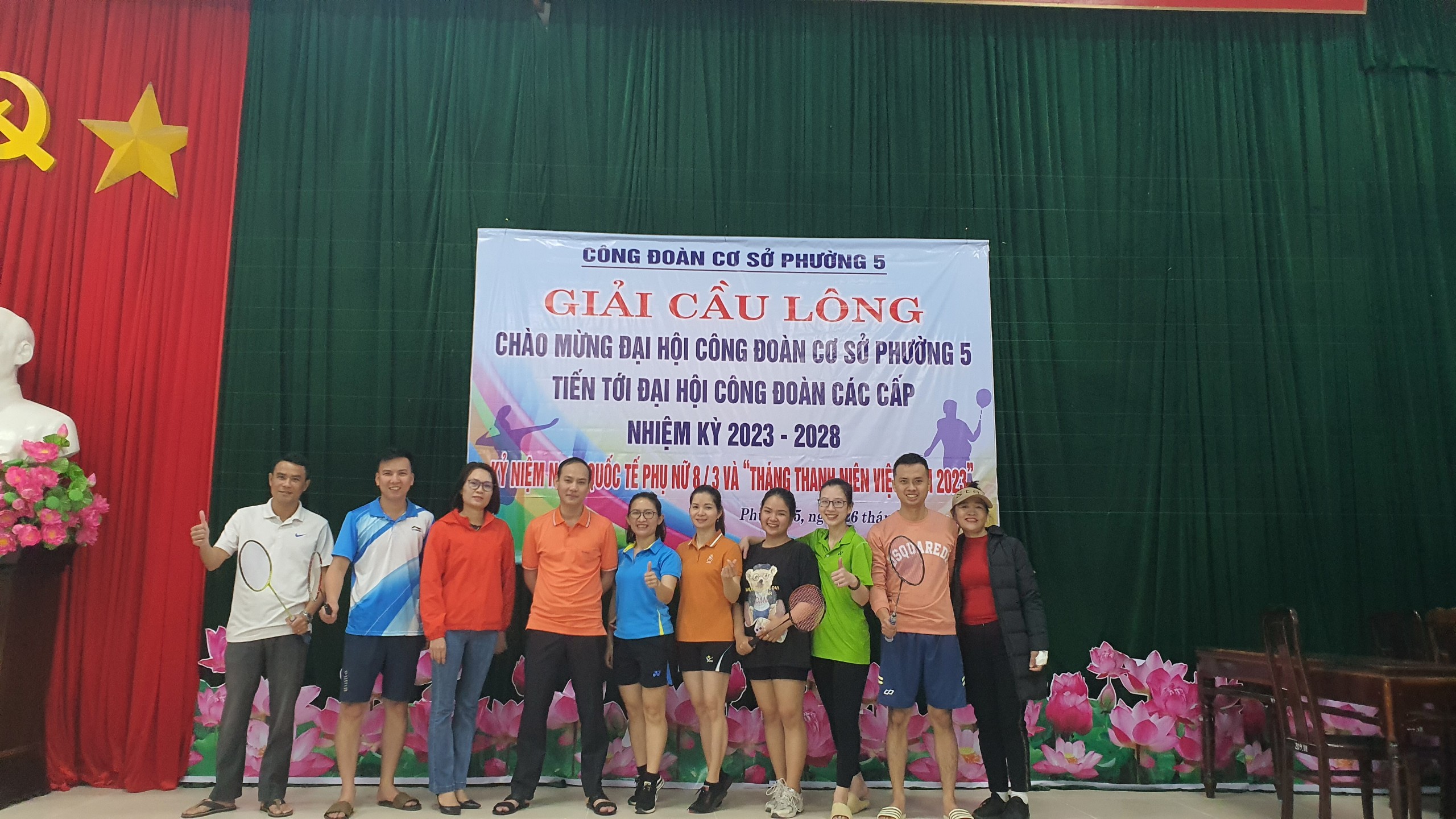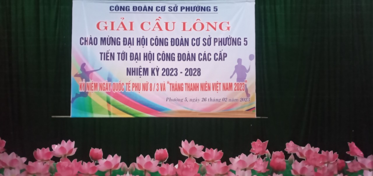 Từ ngày 19/02 đến ngày 26/02/2023, Công đoàn Phường 5 tổ chức giải cầu lông chào mừng Đại hội công đoàn cơ sở phường và tiến tới Đại hội công đoàn các cấp nhiệm kỳ 2023-2028.