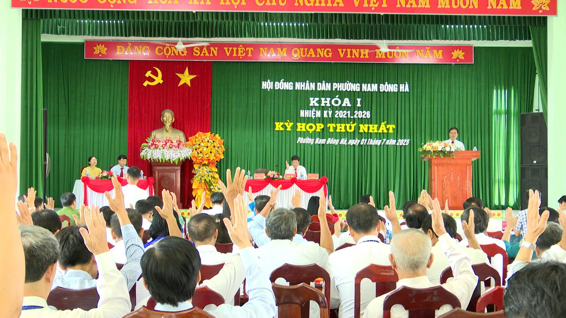 Tổng số đại biểu HĐND phường Nam Đông Hà sau sắp xếp đơn vị hành chính có 87 đại biểu, trong đó đại biểu của 4 phường cũ là 76 người, đại biểu chỉ định 11 người. Tại kỳ họp lần này, HĐND phường Nam Đông Hà tiến hành thảo luận, quyết định nhiều nội dung quan trọng về công tác nhân sự và cơ cấu tổ chức của HĐND và UBND phường, đặt nền móng cho hoạt động của chính quyền cấp cơ sở theo mô hình mới. Kỳ họp đã công bố các Nghị quyết của tỉnh về chỉ định đồng chí Hồ Sỹ Trung - Bí thư Đảng ủy phường giữ chức Chủ tịch HĐND phường; đồng chí Nguyễn Cao Cường, UVBTV Đảng ủy, giữ chức Phó Chủ tịch HĐND; đồng chí Lê Hải Đăng, UVBTV Đảng ủy, giữ chức Trưởng Ban Kinh tế - Ngân sách HĐND; đồng chí Nguyễn Thị Cẩm Ly, UVBTV Đảng ủy, giữ chức Trưởng Ban Văn hóa - Xã hội HĐND phường; đồng thời, chỉ định đồng chí Lê Thị Anh Đào, Phó Bí thư Đảng ủy phường, giữ chức vụ Chủ tịch UBND phường; các đồng chí Nguyễn Việt Hùng, UVBTV Đảng ủy và đồng chí Trương Văn Tuân, UVBTV Đảng ủy, giữ chức PCT UBND phường.