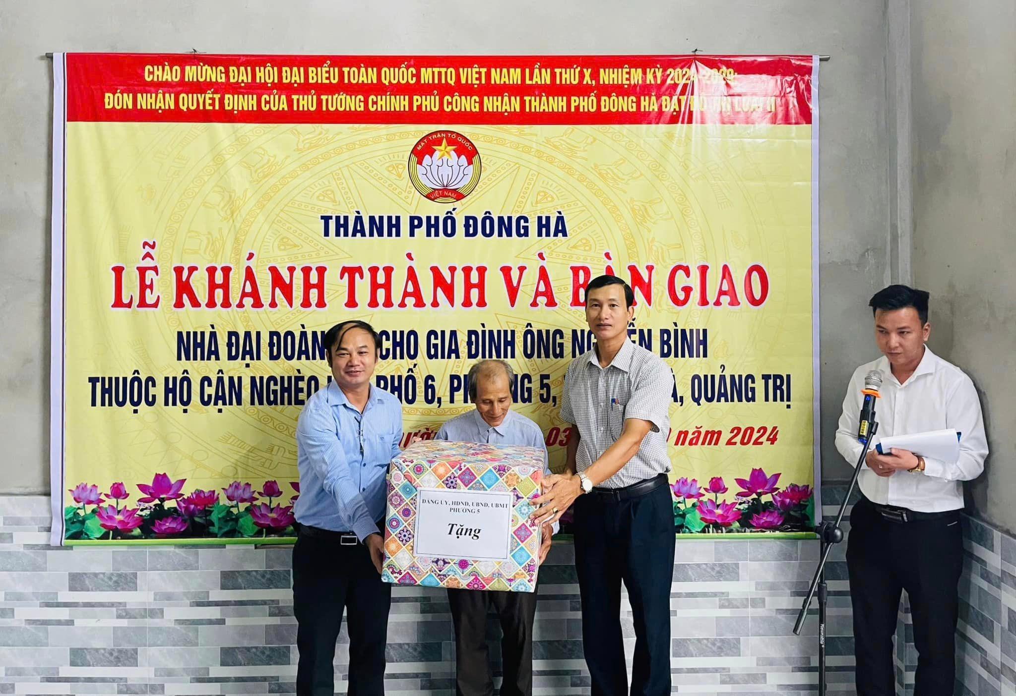 Nằm trong chuỗi các hoạt động thi đua, lập thành tích chào mừng Đại hội đại biểu toàn quốc MTTQVN lần thứ X, nhiệm kỳ 2024 - 2029 và đón nhận Quyết định của Thủ tướng Chính phủ công nhận Đông Hà là đô thị loại II. Hôm nay Ủy ban MTTQVN thành phố phối hợp với Ủy ban MTTQVN Phường 5 tổ chức lễ Khánh thành và bàn giao nhà Đại đoàn kết cho gia đình ông Nguyễn Bình, thuộc hộ cận nghèo khu phố 6, Phường 5.